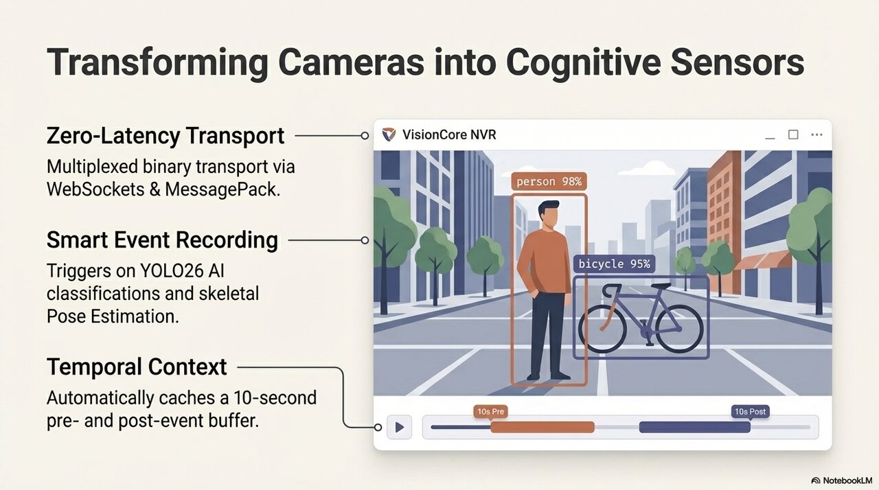 Give your ecosystem the gift of sight. VisionCore is the native computer vision and NVR subsystem that transforms standard video feeds into intelligent data streams. By combining high-performance FFmpeg processing with the latest YOLO AI models, HomeGenie understands the physical world in real time.