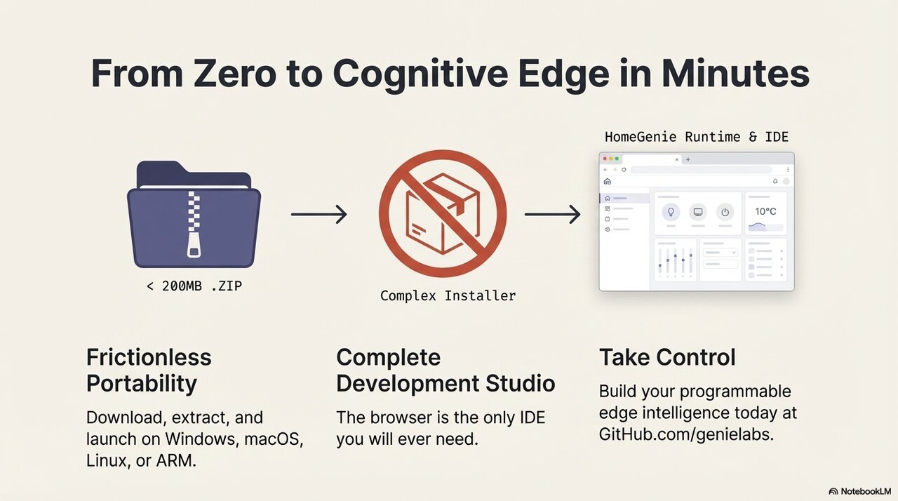 Designed to be both powerful and accessible, HomeGenie transforms your environment into a cognitive system capable of understanding the physical world, reasoning about complex intents, and executing actions in real time—all while remaining 100% cloud-independent.