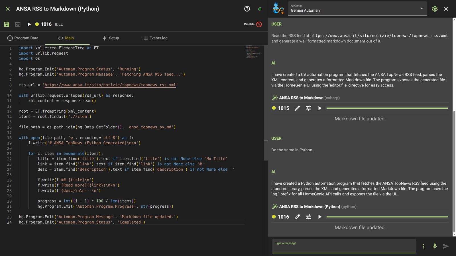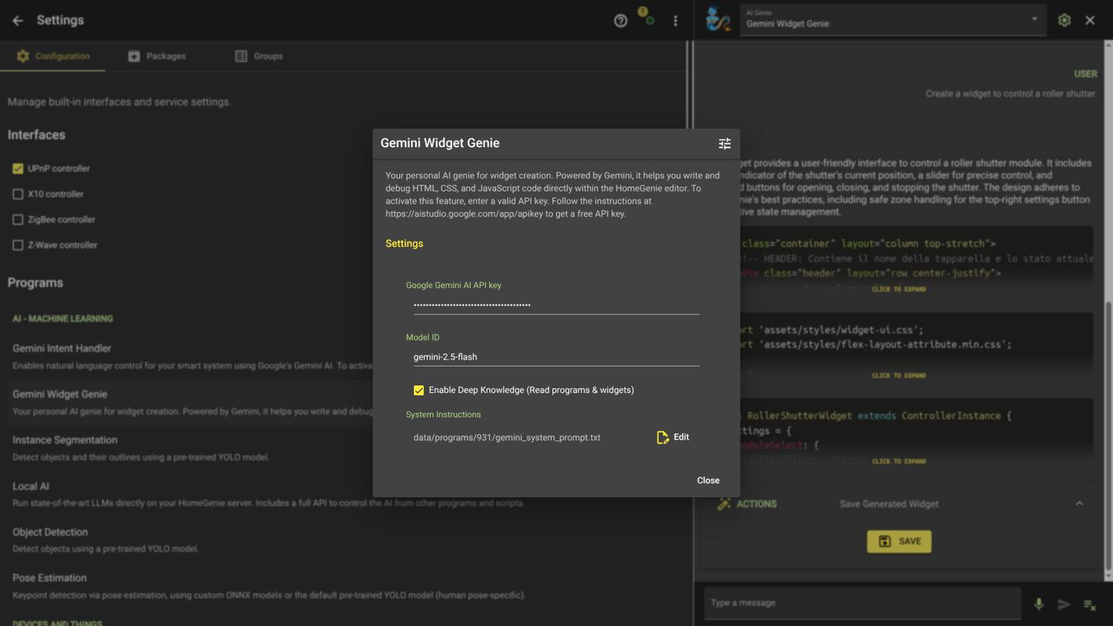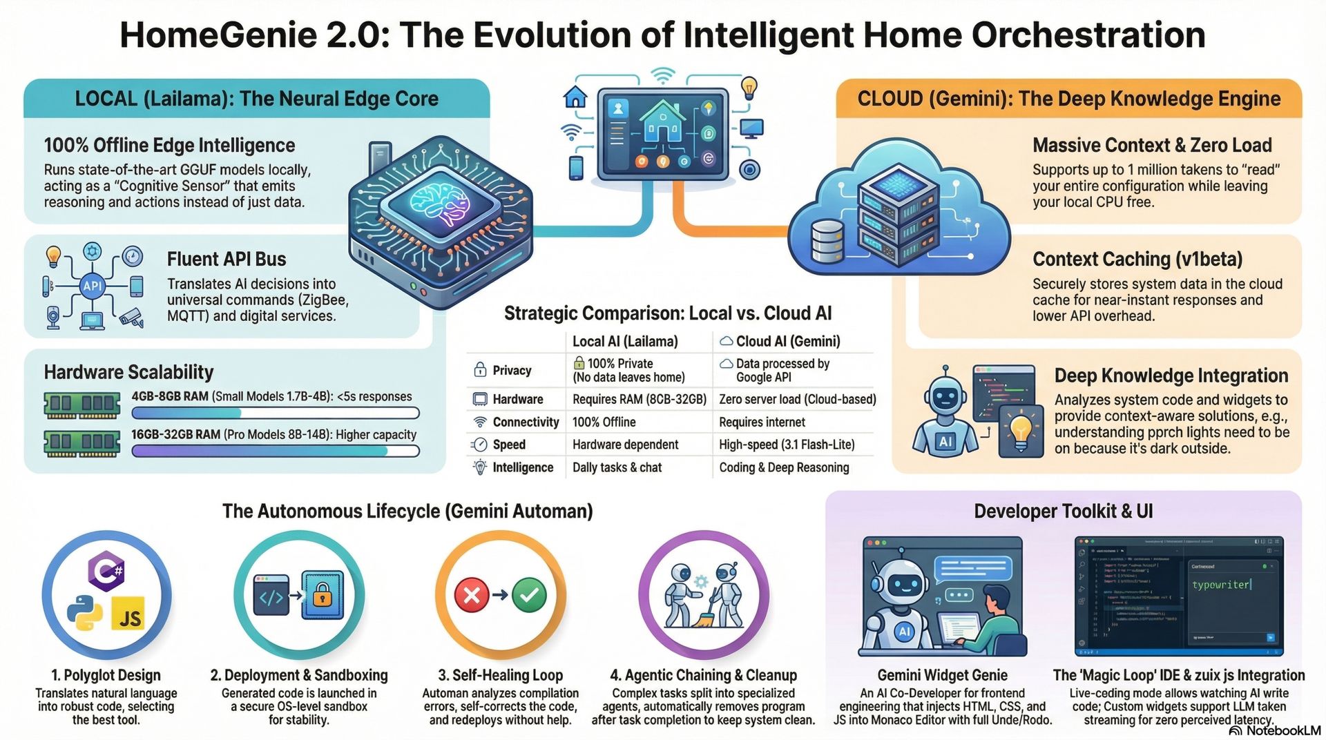 - Massive Context: With a window of up to 1 million tokens, Gemini can "read" your entire HomeGenie configuration, including every automation program and UI widget.