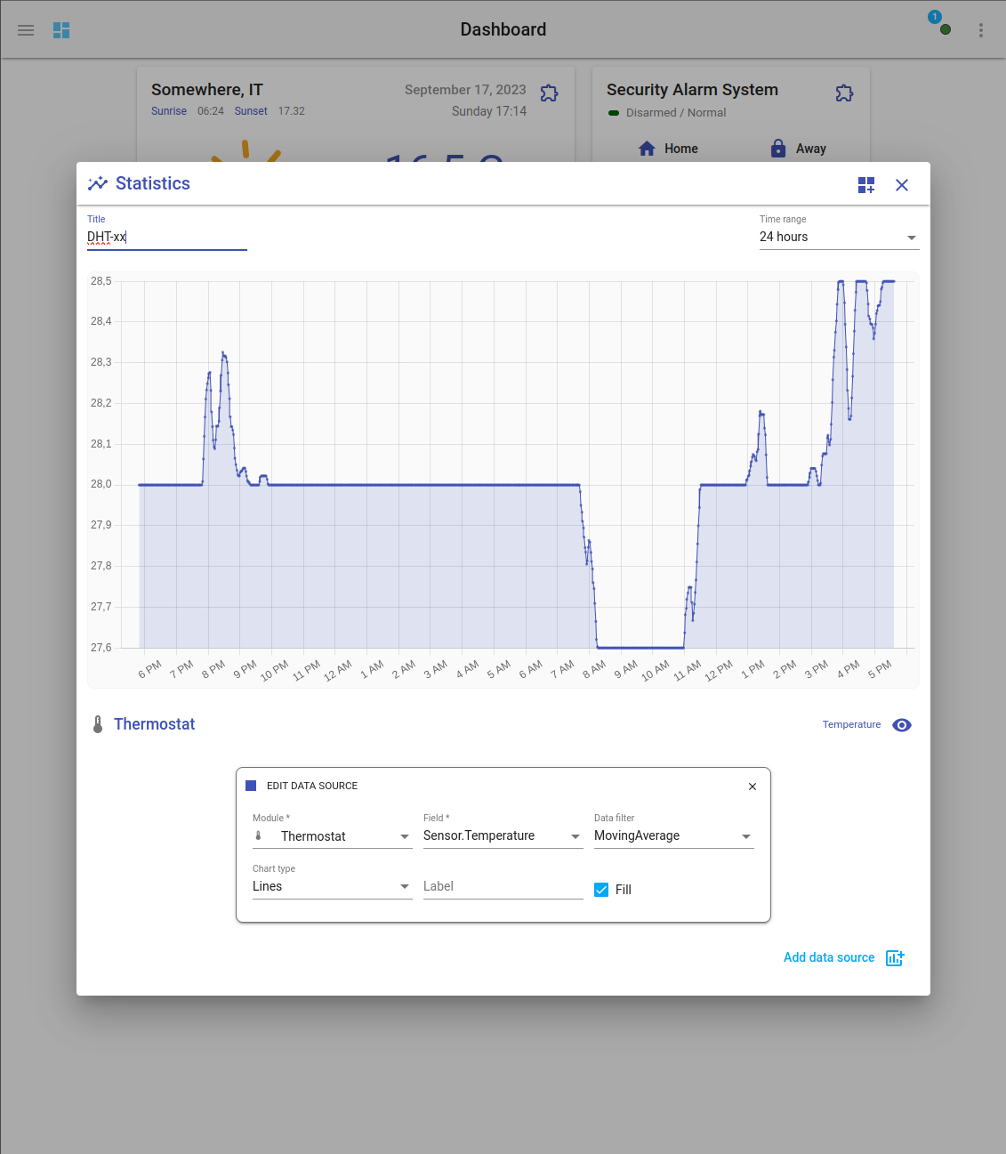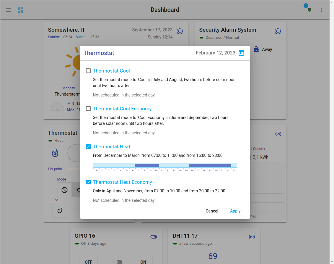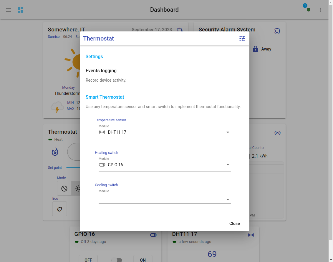 Now we bring it all together using the built-in Thermostat Widget.