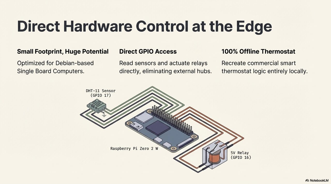 - Direct Hardware Access: Unlike a generic server, running on an SBC gives HomeGenie direct access to GPIO pins. This allows you to connect sensors, relays, and LEDs directly to the device, eliminating the need for external hubs or bridges.